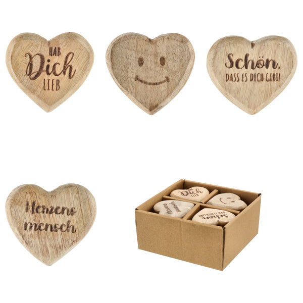 Mangoholz, 4 verschiedene Designs, 24Stück in Windowbox B:6cm H:6cm T:1cm