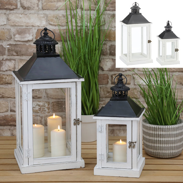 Metall/Holz/Glas, antikweiß, S= 17x17x37cm = EAN 4032037029484 M= 24x24x53cm = EAN 4032037029491 B:25cm H:54cm T:25cm