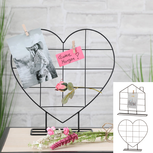 Metall, schwarz, 2 Designs sortiert: Herz & Haus, inkl. Klammern aus Holz, geshrinked H:80cm T:8cm