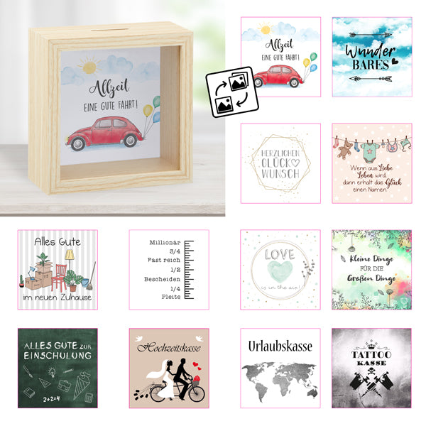 mit 12 Einleger, MDF/Glas, Farbe Natur, zum Stellen. B:14,5cm H:14,5cm T:6,5cm