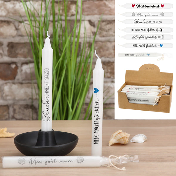 Paraffin 2x19cm, Leuchtdauer: Sortierung: Küstenkind meer geht Immer Glück schmeckt salzig Du bist mein Anker Meer macht glücklich Lieblingsplatz