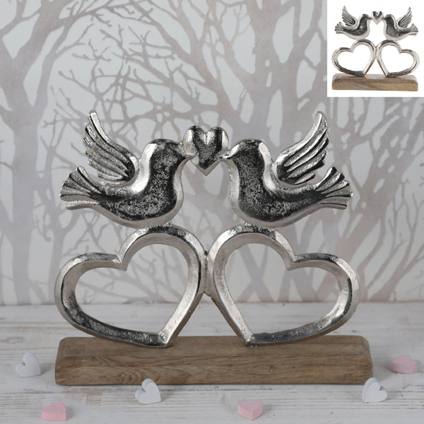 Taubenpaar Herz auf Fuß, Alu, Mango, silber, kl., ca. 18cmH
