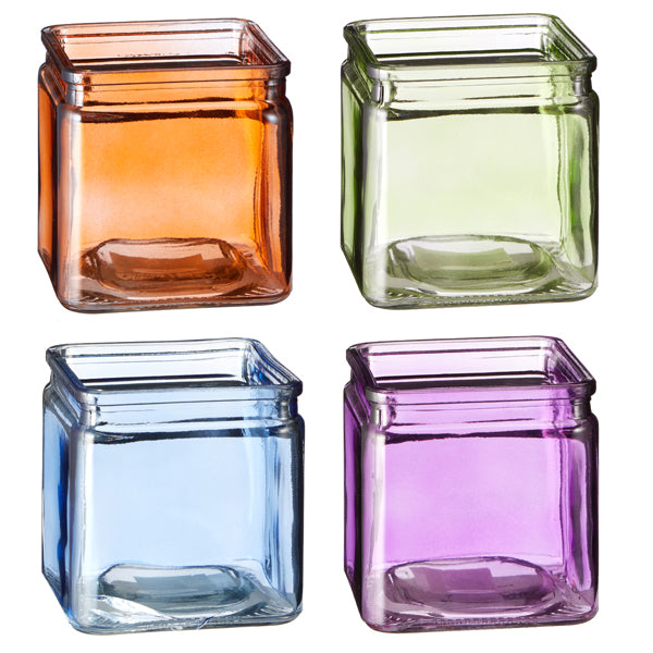 Glas, blau, grün, orange und lila sort. B:10cm H:10cm T:10cm