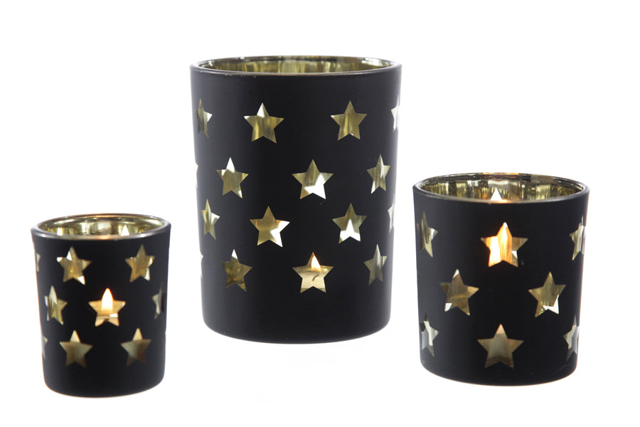 Glas außen matt schwarz, innen glänzend gold, Motiv durchscheinend B:10cm H:12,5cm T:10cm
