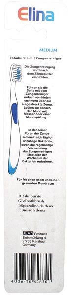 Zahnbrste Elina 1er mit Zungenreiniger und Antirutschgriff auf Karte