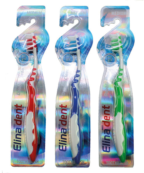 Zahnbürste Elina Multikopf 1er m. Zungenreiniger, Softgriff, medium , farbig sort. 19cm