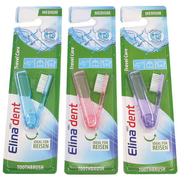 Zahnbürste 1er Elina f.die Reise 14cm auf Karte aufklappbar, farbig sortiert [D/GB/I/F]