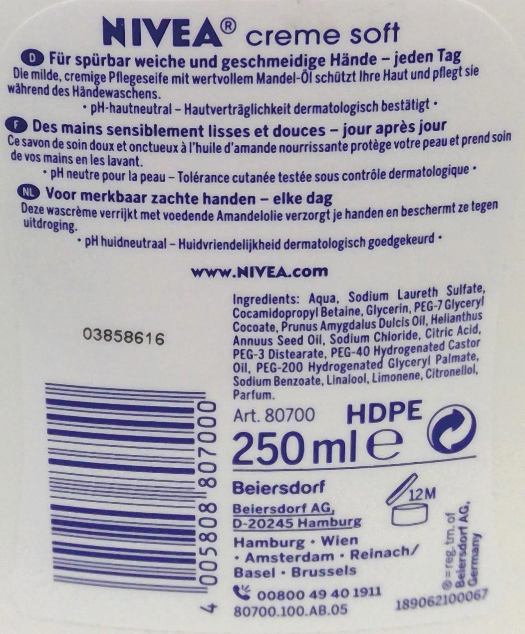 Nivea Flssigseife 250ml Creme Soft