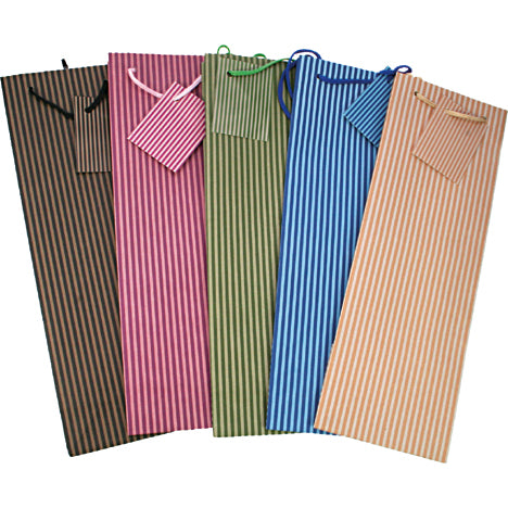Geschenktasche Kraftpapier Flasche 36x12,5x8cm Streifendesign [D]