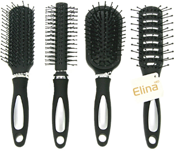 Haarbürste mit gummierten Griff 17cm 4-fach sort. im 12er Kusto-Tray [D/GB/I/F]
