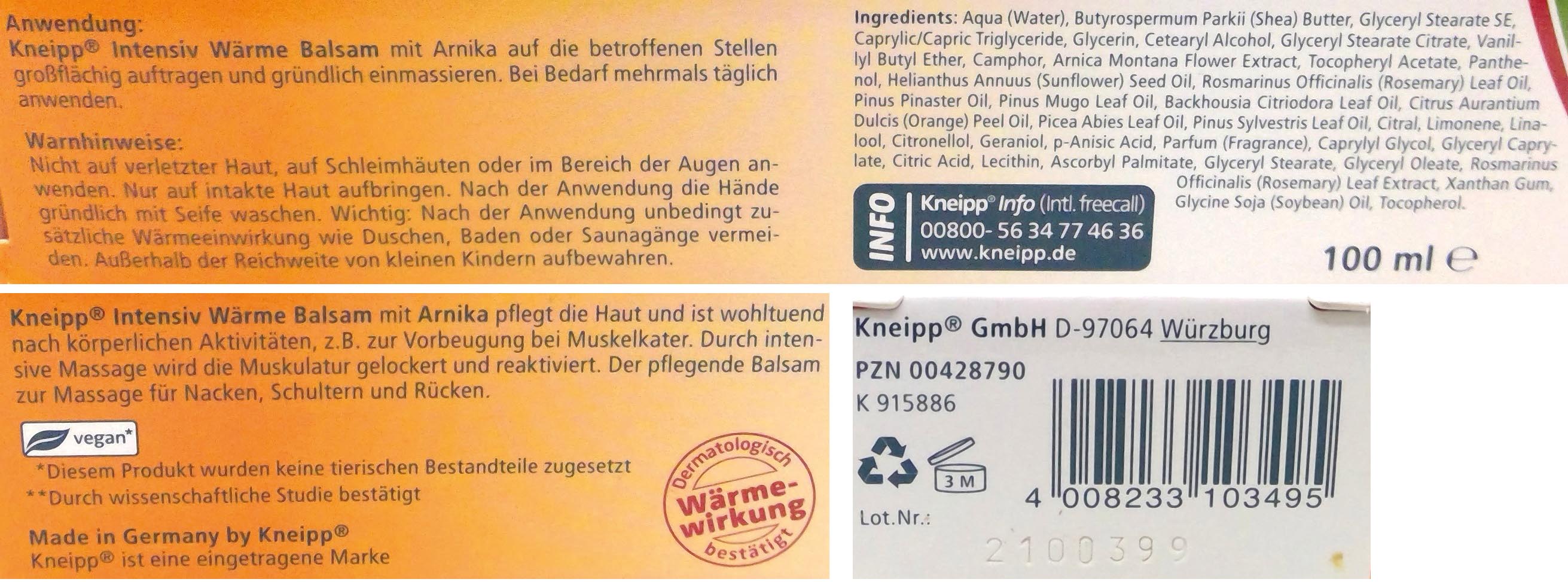 Kneipp Wrme Balsam 100ml mit Arnika zum Einreiben fr Nacken, Schulter und Rcken sprbare Wrmewirkung - lockernd u. entspannend