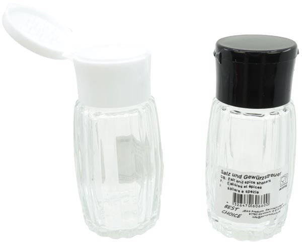 Salz und Gewürzstreuer mit Klappe 8cm aus Glas