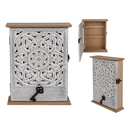 Holz-Schlüsselkasten mit Tür & weißem Blumendekor,