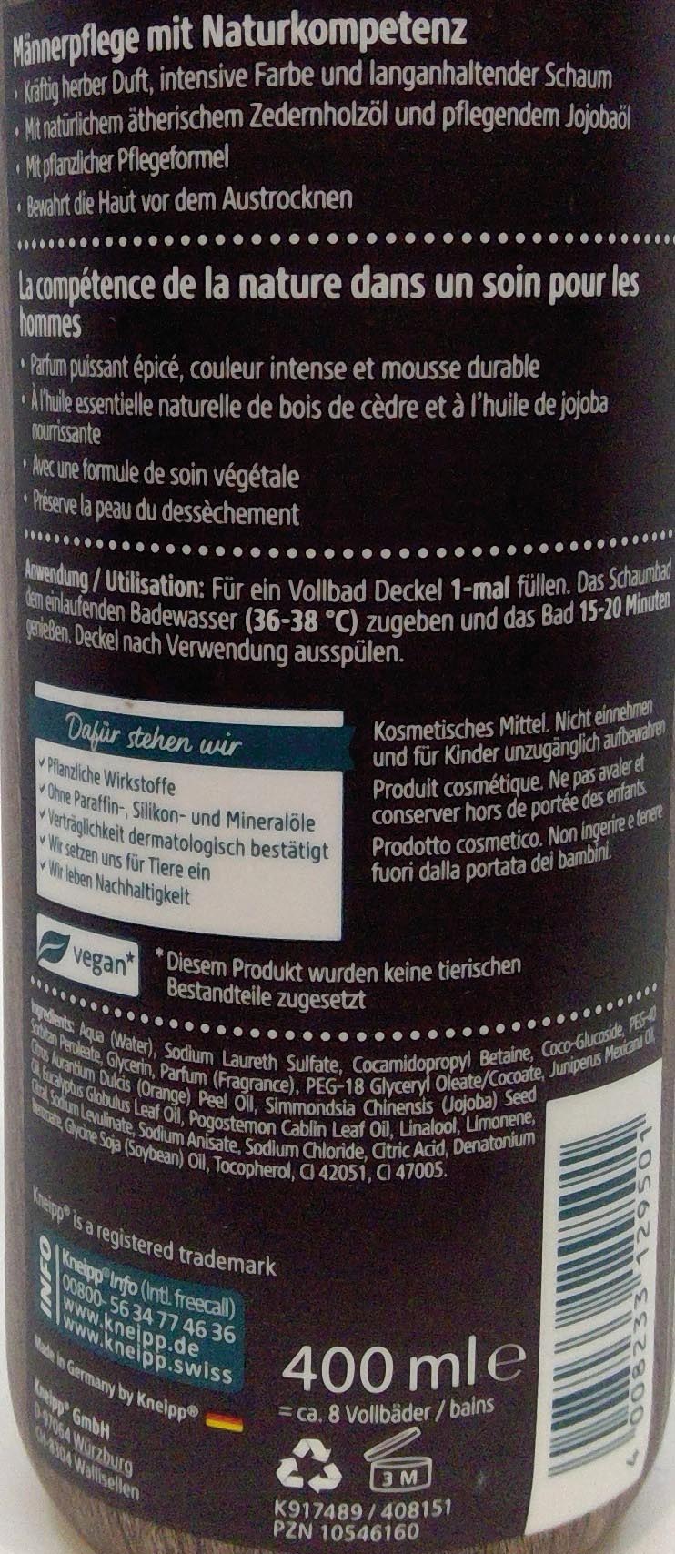Kneipp Aroma Schaumbad 400ml Mnnersache Zedernholz Jojobal