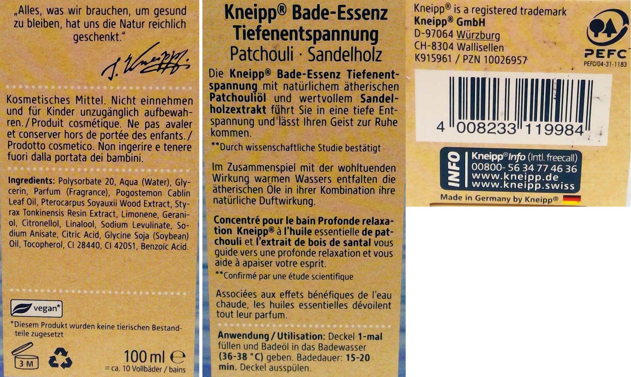 Kneipp Bade-Essenz 100ml Tiefen-Entspannung Patchouli & Sandelholz