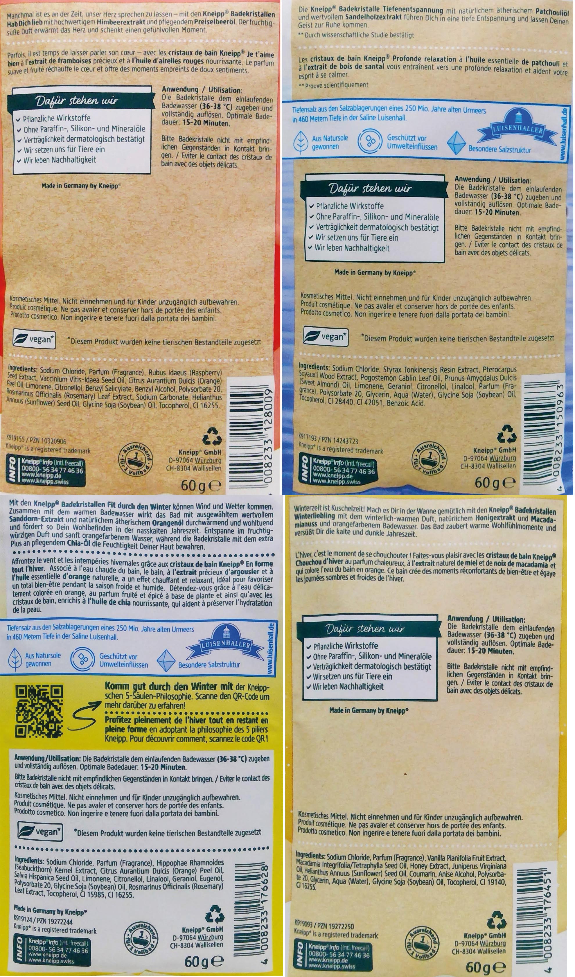 Kneipp Badekristalle 60g 4fach sortiert 12x Hab Dich lieb, 12x Fit durch den Winter, 12x Winterliebling, 12x Tiefenentspannung