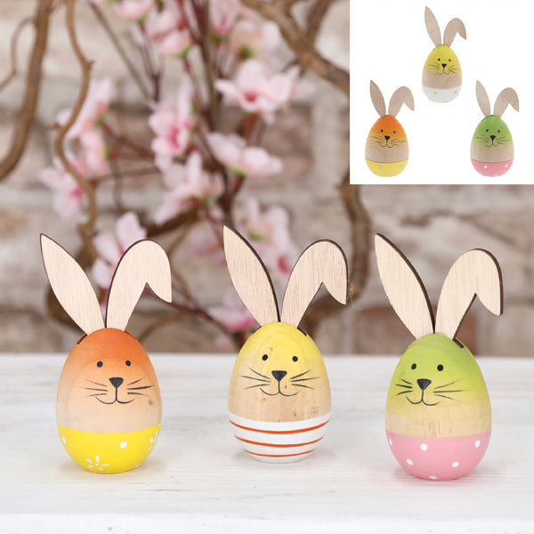 Holz Osterhase Eiform, 3/s, S, ca.5x11cm