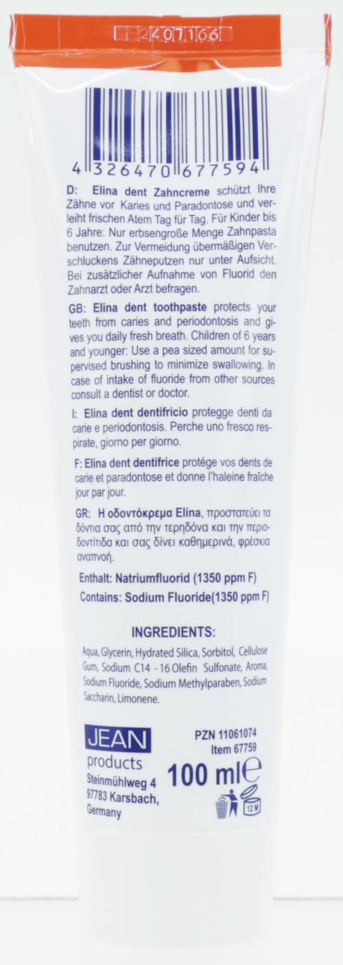 Zahncreme Elina 100ml Original Kariesschutz schtzt Zhne & Zahnfleisch vor Karies und Paradontose, verleiht frischen Atem