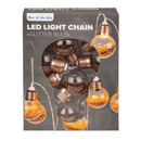 10 LED-Glühbirnen, ca. 8 cm groß, Gesamtlänge ca. 1,7 m, betrieben mit 2 AA-Batterien. Nur für Innenbereich geeignet. Verpackt in einer Kunststoff-Box.