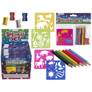 Das Set besteht aus einer Schablone, Buntstiften und einem Anspitzer. Abmessungen: 15,5x1,5x14,5 cm. Verfügbar in 4-facher Sortierung. Materialien: Holz (Buntstifte), Plastik (Schablone, Anspitzer).