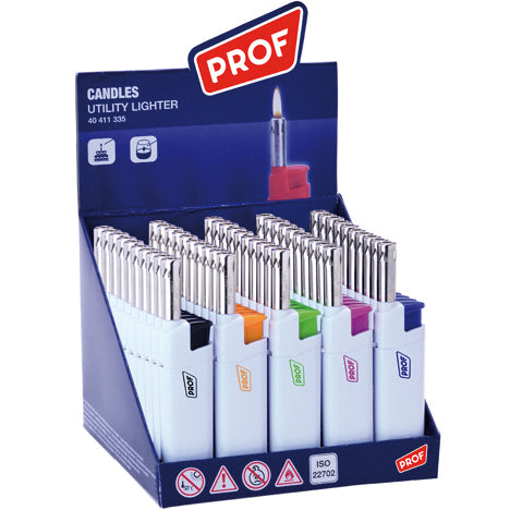 Feuerzeug elektr. Stabfeuerzeug 11x2,5cm , 50er im Display Farbkombination aus weiß & 5 vers. Farben [GB/FR/DE/IT/SP/PT/FI/SE/HU/NO/DK/NLGR/PL/HR]
