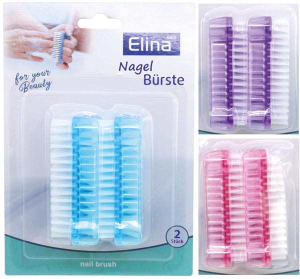 Handwaschbürste 2er a.Karte farb. sort. 8,5x3x3cm in grün,rosa,lila [D/GB/I/F]