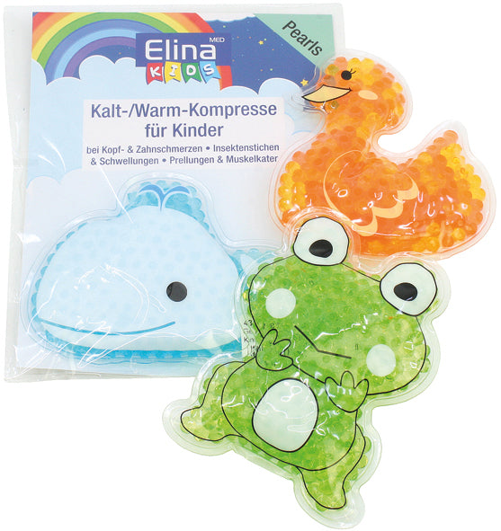 Kompresse Gelperlen Kids kalt/warm 3fach sort. Tiermotive Ente, Frosch und Wal mikrowellengeeignet, Medizinprodukt [D]