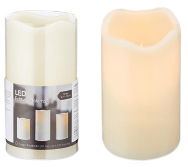 LED Echtwachs Kerze 13cm Elfenbein flackernde LED