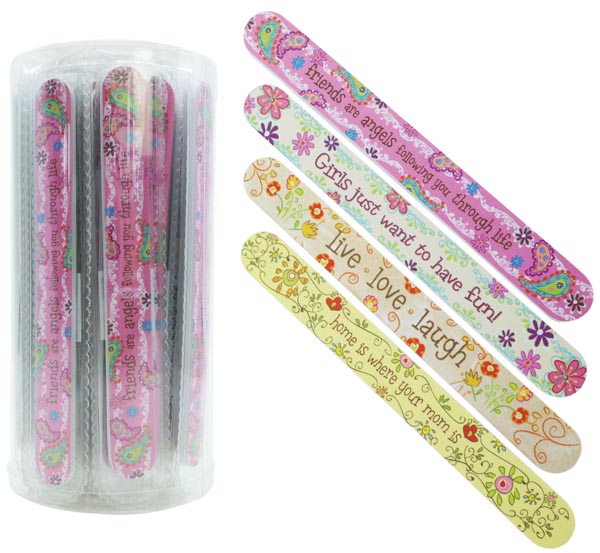 Nagelfeile Soft geschäumt 18cm in Box m.Sprüchen und Blumen in wiederverwendbarer Hülle [D/GB/F/I]