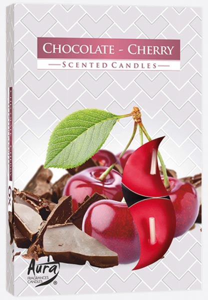 Teelichter Duft 6er Schokolade-Kirsche in farbiger Faltschachtel, Made in Europe